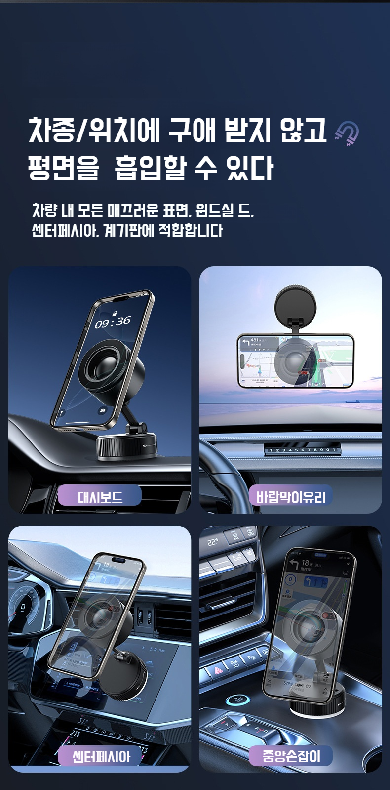 마그네틱 차량용 블루투스 스피커 타입 흡착판 휴대폰 거치대 노브 블루투스 스피커